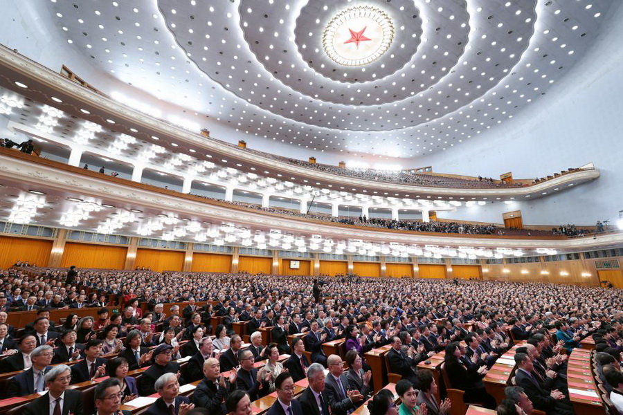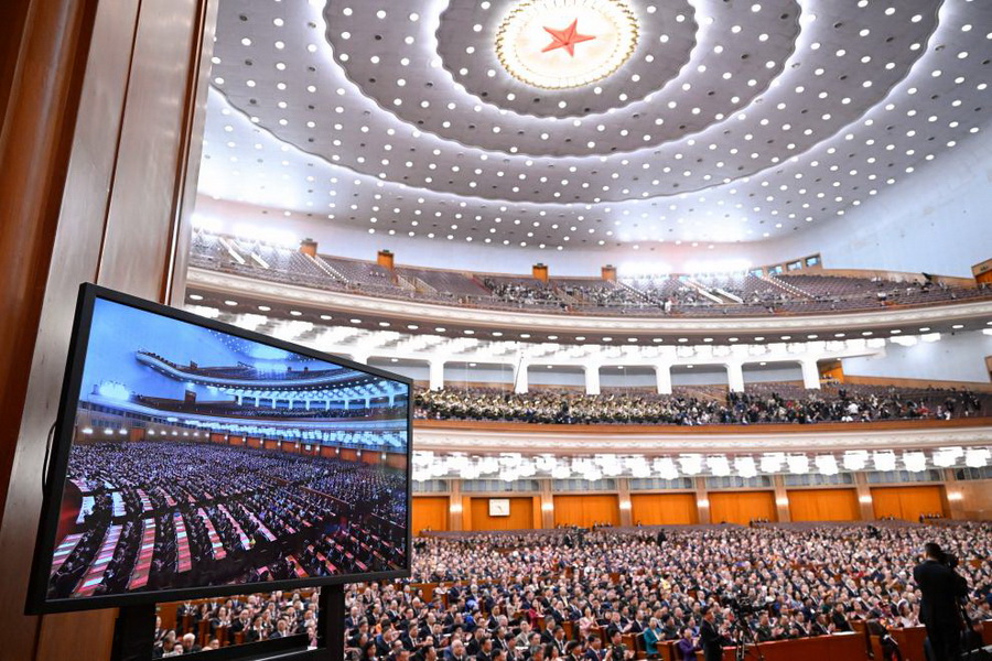 3月11日,全国政协十四届四次会议在北京人民大会堂举行闭幕会。这是人民大会堂内景。