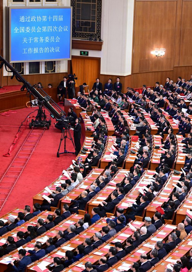 3月11日,全国政协十四届四次会议在北京人民大会堂举行闭幕会。
