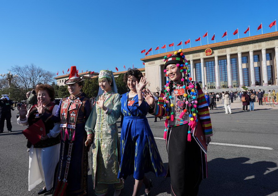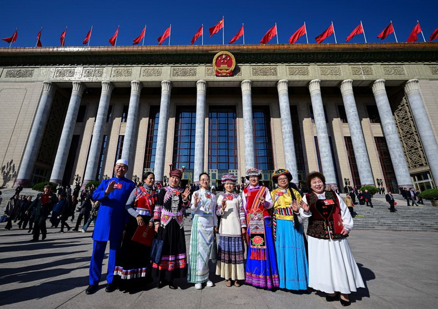 3月11日,全国政协十四届四次会议在北京人民大会堂举行闭幕会。这是闭幕会后,委员们在人民大会堂前合影。