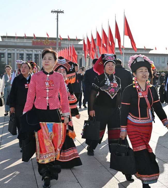 3月9日,十四届全国人大四次会议在北京人民大会堂举行第二次全体会议。这是全国人大代表走向会场。