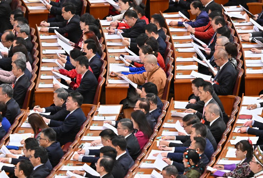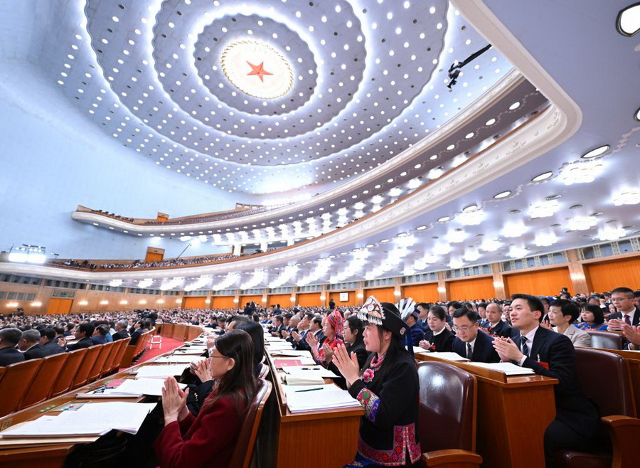 3月9日,十四届全国人大四次会议在北京人民大会堂举行第二次全体会议。
