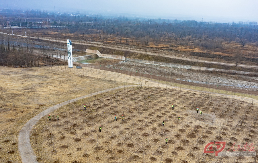 2026年1月31日,陕西省西安市长安区刘秀村,曾经的荒地如今栽种了银杏树,未来这里将成为人们休闲娱乐的好去处。摄影 陈建/人民画报