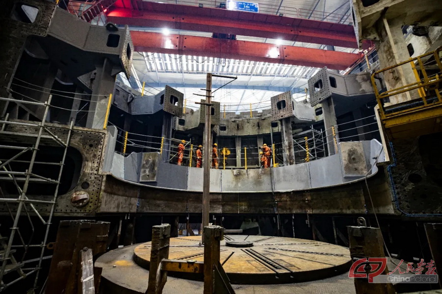 在中铁装备的总装车间,工作人员正在组装盾构机。摄影 陈建/人民画报