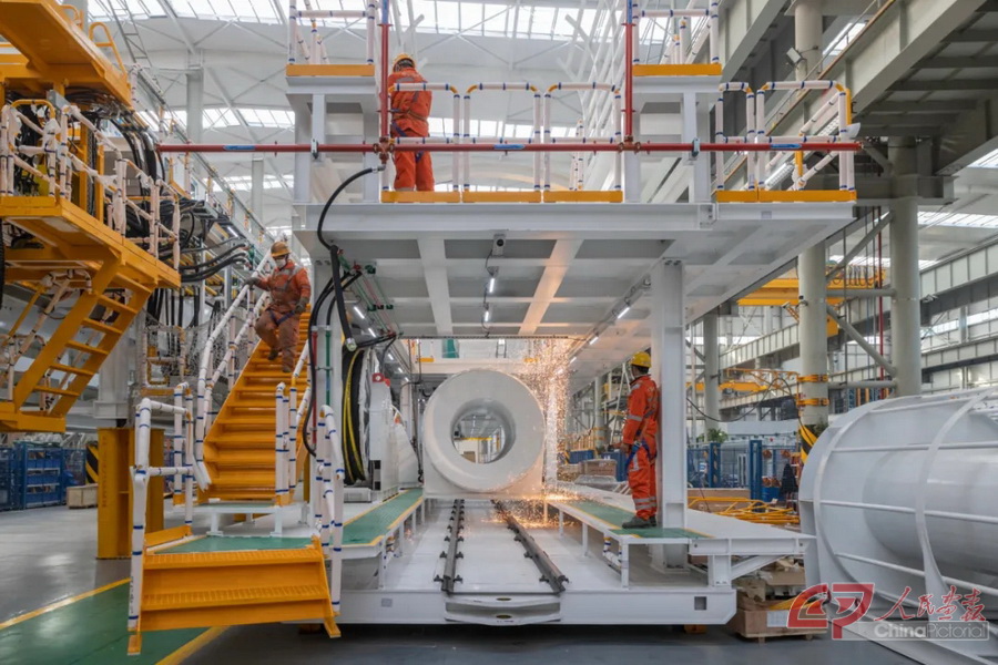 在中铁装备的总装车间,工作人员正在作业。摄影 郭莎莎/人民画报