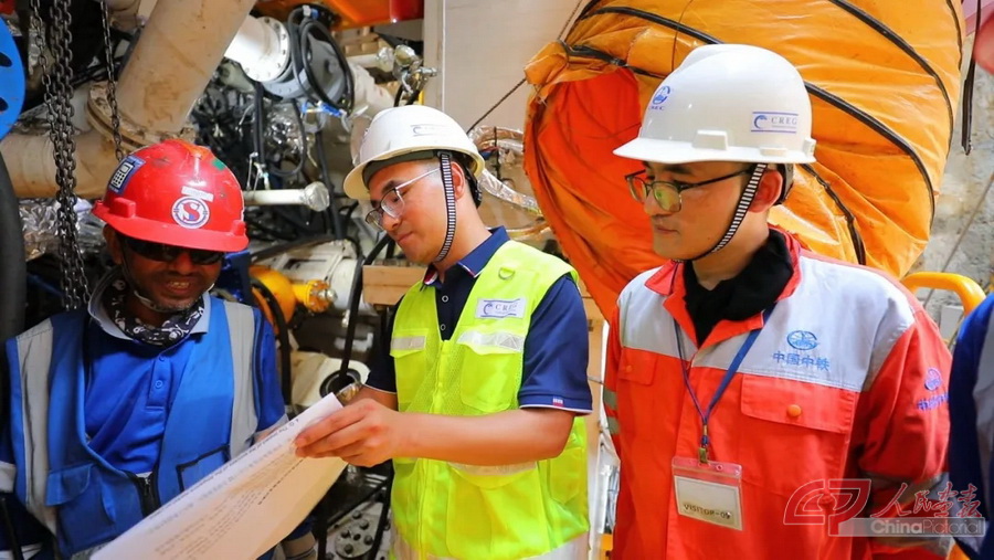 2025年12月,中铁装备新加坡分公司工程师在新加坡跨岛线项目一线指导工人开展盾构机维保工作。供图 中铁工程装备集团有限公司