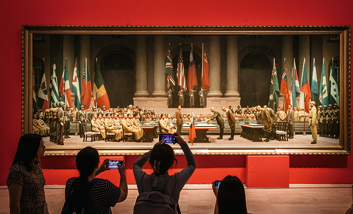 9月4日,北京,观众在中国美术馆参观“人民必胜—纪念中国人民抗日战争暨世界反法西斯战争胜利80周年美术作品展”。 摄影 郭莎莎/人民画报