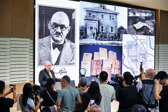8月15日,江苏南京,“让历史说话 让史实发言”南京大屠杀研究系列书刊推介活动在侵华日军南京大屠杀遇难同胞纪念馆举行,部分援华抗日国际友人和南京大屠杀幸存者后人参加此次活动。德国友人约翰·拉贝的孙子托马斯·拉贝发表演讲。 视觉中国 供图