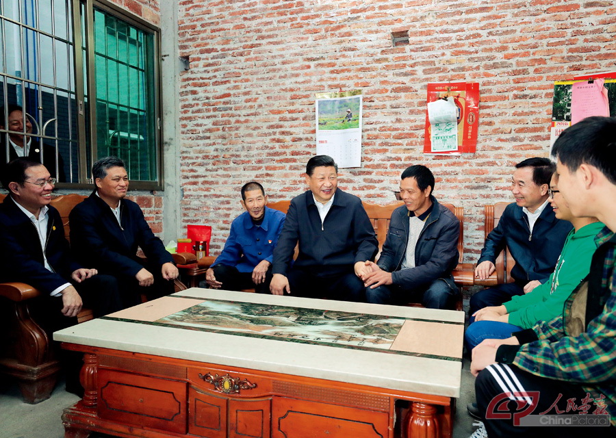10月23日下午,习近平在英德市连江口镇连樟村贫困户陆奕和家,同他们亲切地拉家常。 摄影 鞠鹏/新华社