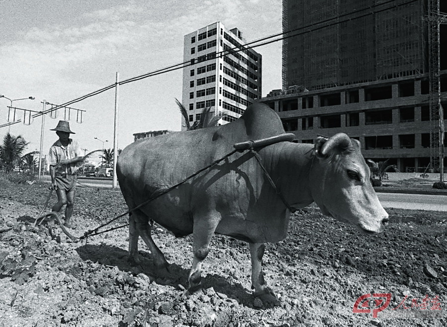 建省之初的海南,海口东湖边上的人才墙是许多“闯海人”心中永远的记忆,每个上岛找工作的人都会在这里查看各种信息。(1988年摄) 建省之初十万人才过海峡。(1991年摄) 城市里的最后一块田地。(1989年摄) (黄一鸣:海南省摄影家协会名誉主席)