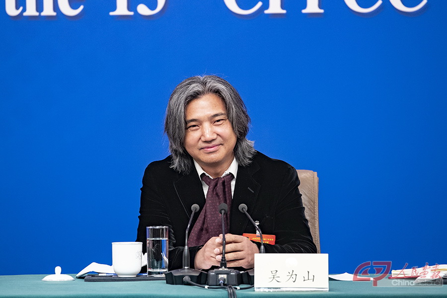 吴为山在回答记者提问。摄影 陈建/人民画报