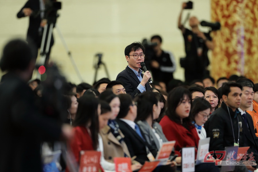 中央广播电视总台记者提问。摄影 万全/人民画报