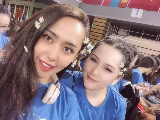 木尼热·阿不力米(左)是一位新疆维吾尔族姑娘,这是她在课间与同学自拍。(图片由受访者本人提供)