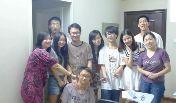 蔡婉莹(左起第二位蓝衣女孩)和翻译爱好者们在一起。(图片来源自网络)