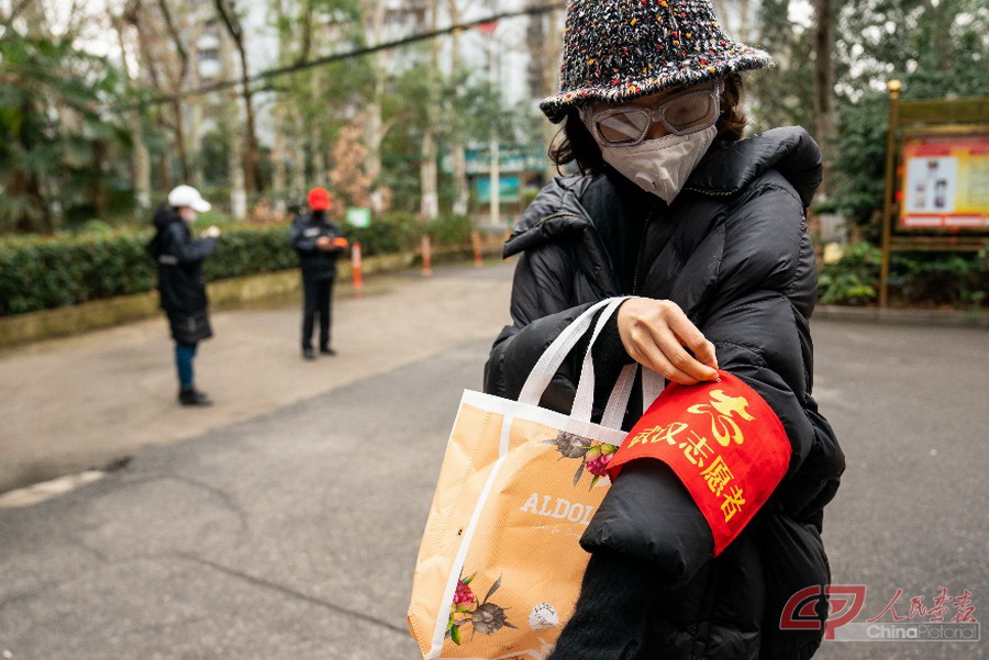 谢蒙,28岁,湖北省农科院工作人员,楚世家小区志愿者。今天她负责为居民外出釆购生活用品及食品。