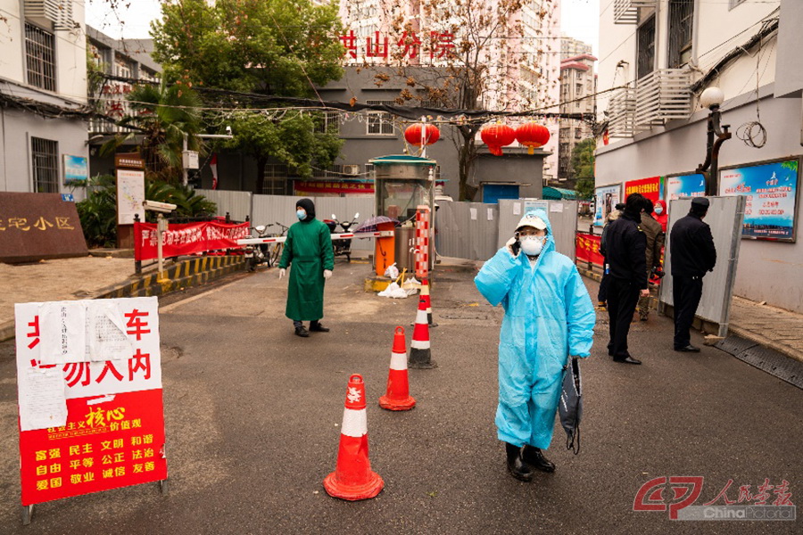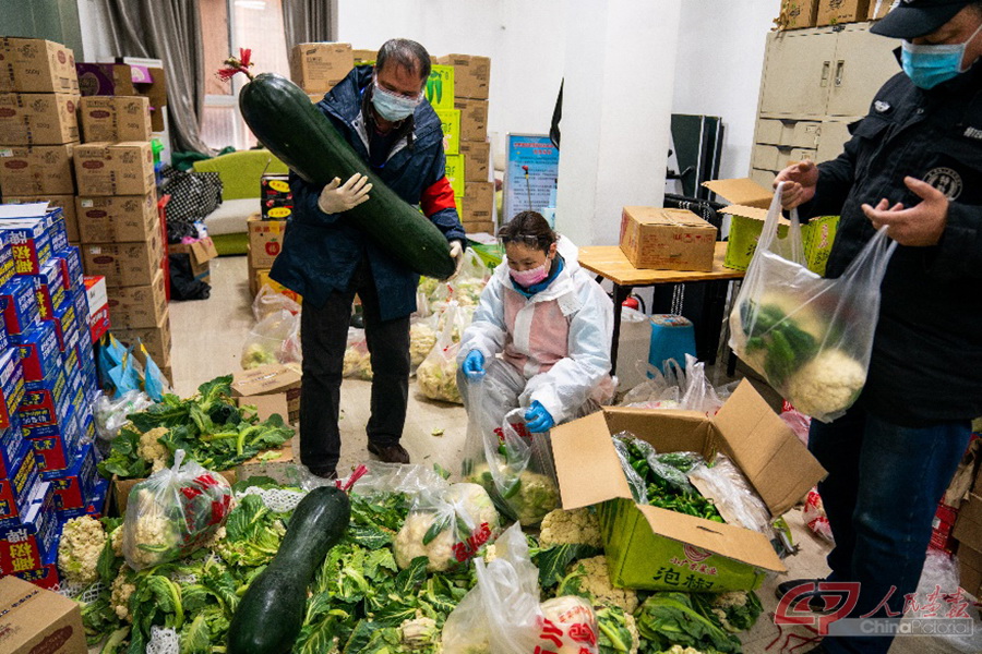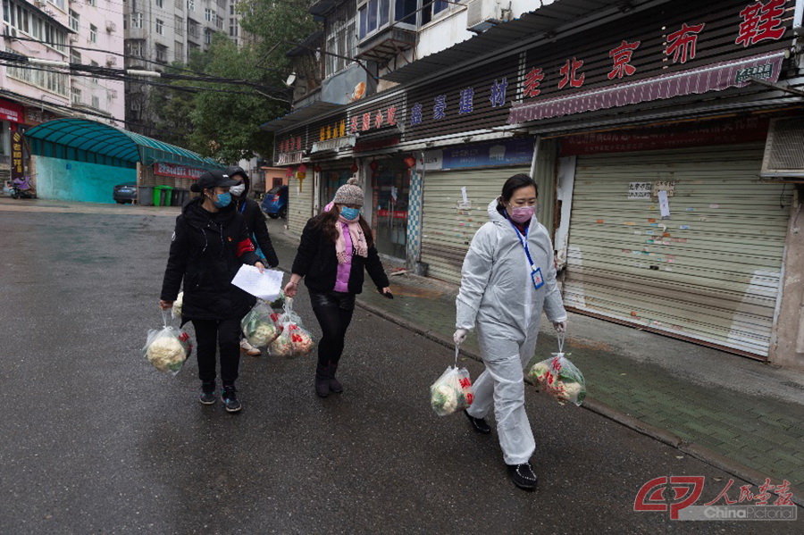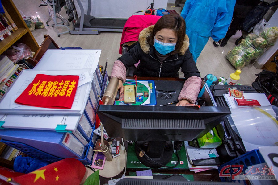(三) 武铁社区是武汉市武昌区水果湖街道下辖的社区,是上世纪70年代建立的一个老旧社区,社区内居住的大多是武汉铁路局在职或退休职工及其家属等。疫情期间,社区严防严控,所有进入社区人员都要测量体温,做好登记。社区书记章肖鹏来自山东青岛,大学毕业后留在了武汉。谈及第二故乡的这次疫情,她心情沉重,一度哽咽,但为服务好社区居民,她顾不上叹息,转而又“奔跑”着为社区困难户送菜上门。 武铁社区党委书记章肖鹏带领社区工作人员到社区孤寡老人、困难户家中送蔬菜。 武铁社区居委会如今像个蔬菜店,社区干部将全国各地捐助给武汉的新鲜蔬菜分发给社区不会使用网络购物的老人和困难户。 武铁社区居委会工作人员为社区居民提供所需服务。 武铁社区的物业人员连日来辛苦工作,他们和社区其它工作人员一起,保障着居民的日常生活。 袁秋明,湖北省委宣传部机关纪委书记。疫情来临之后,湖北省委宣传部除了正常工作外,派出四十多位党员干部下沉到六个社区工作。 武铁社区严防严控,所有进入社区的人员都要测量体温,做好登记。湖北省委宣传部的党员干部下沉到这里承担起相应的防控工作。