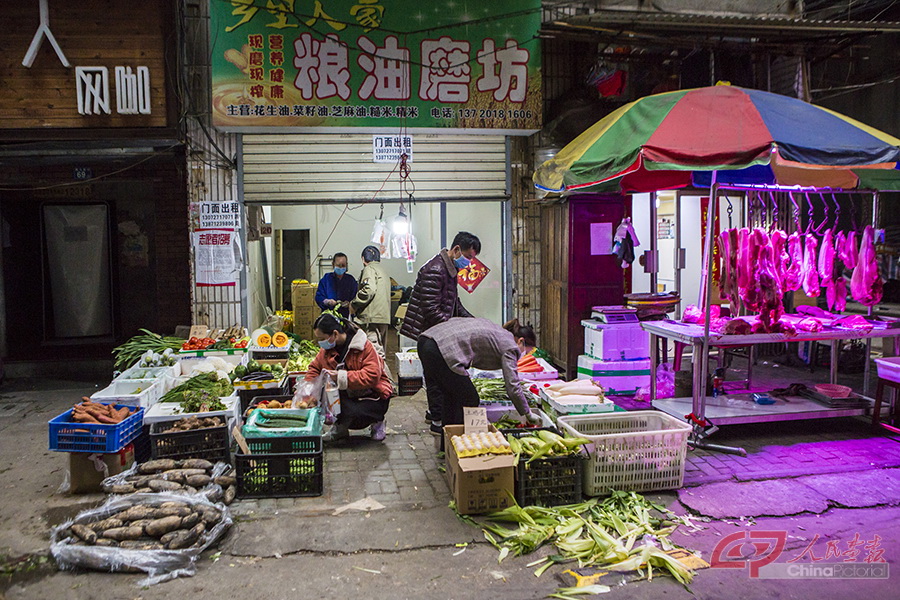 4月2日,武汉燕马社区,市民在菜店买菜。
